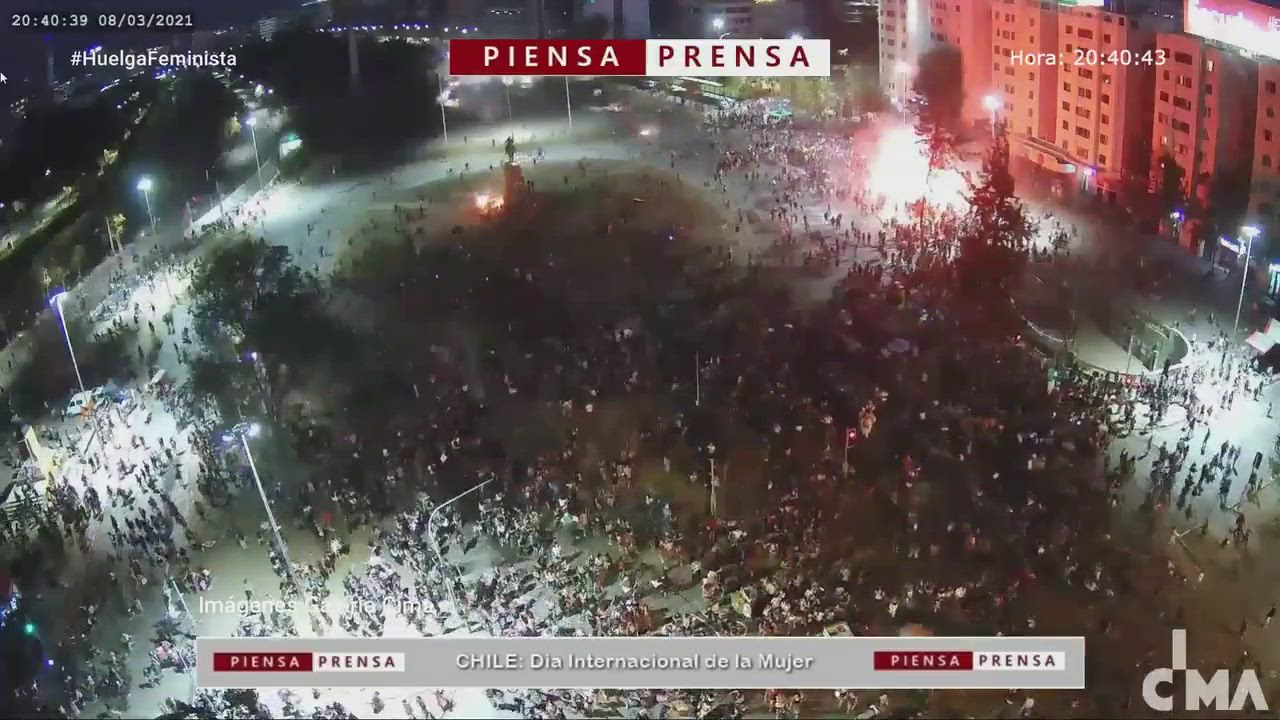 Feminist Demonstration in Plaza de la Dignidad, Chile. Police used water cannons and tear gas
