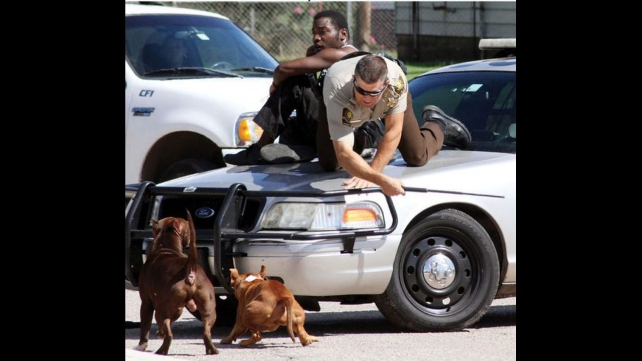 Instead of slowing down, the officer kept on driving just as the man had clambered up onto the roof of the vehicle.