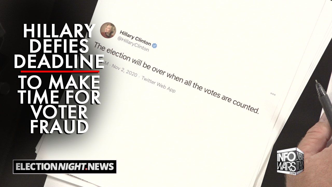 Alex Jones breaks down what Hillary's recent tweet about not ending the election until all the votes are counted as a play for more time to defraud the vote.