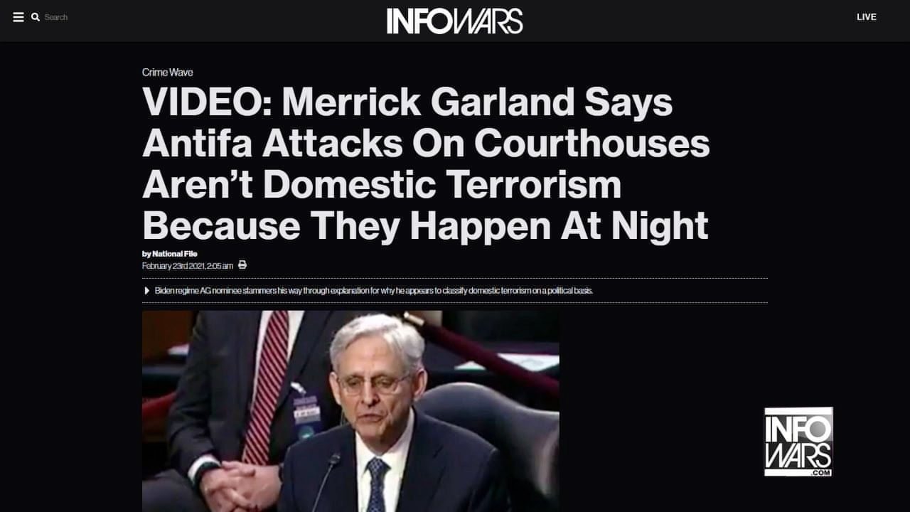 Alex Jones breaks down the new Attorney General nominee Merrick Garland saying Antifa attacking government buildings at night makes them not domestic terrorists as the left leads the masses down an inverted path of reality.