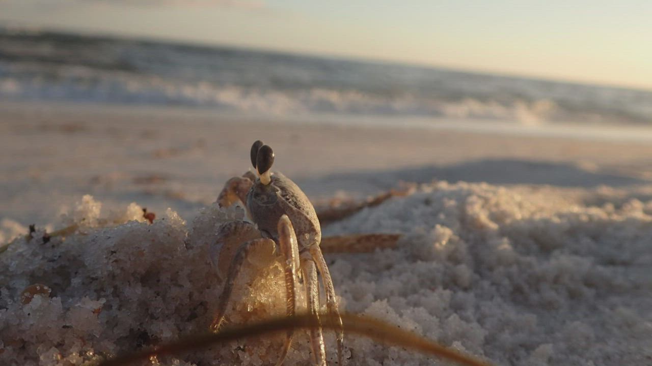 Compilation of photos, like a time laps, of Sand Crab coming out of his hole. Pensacola Fl