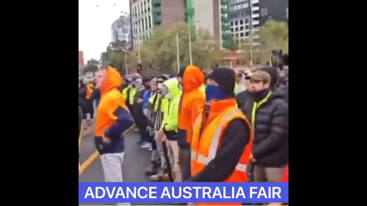 Construction workers in Melbourne protest against mandatory Covid jab requirements imposed by the communist Andrews govt.