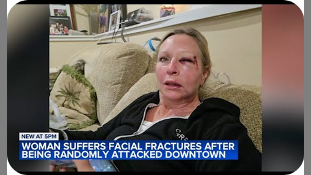 White woman punched by Criminal Violent Negro, knocked out with Facial Fractures downtown Chicago(