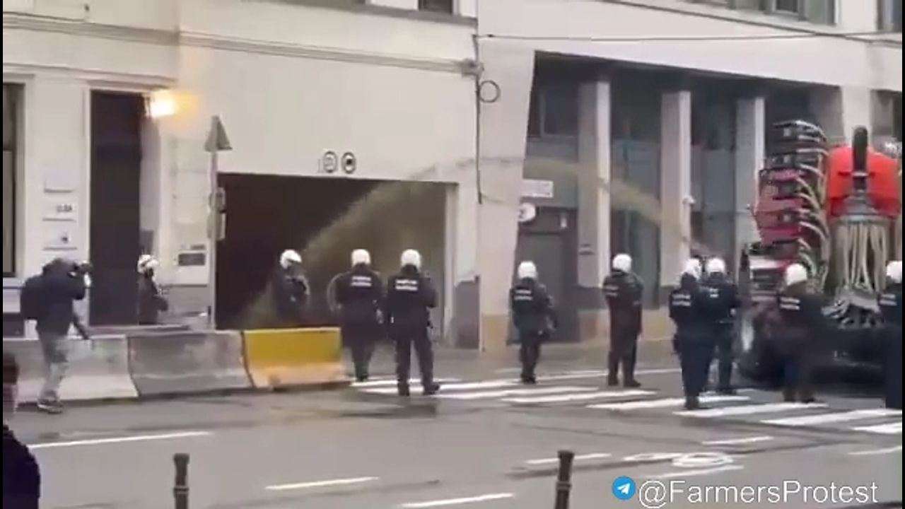 🚜 LMAO: Farmers spray dung on police in Belgium!!