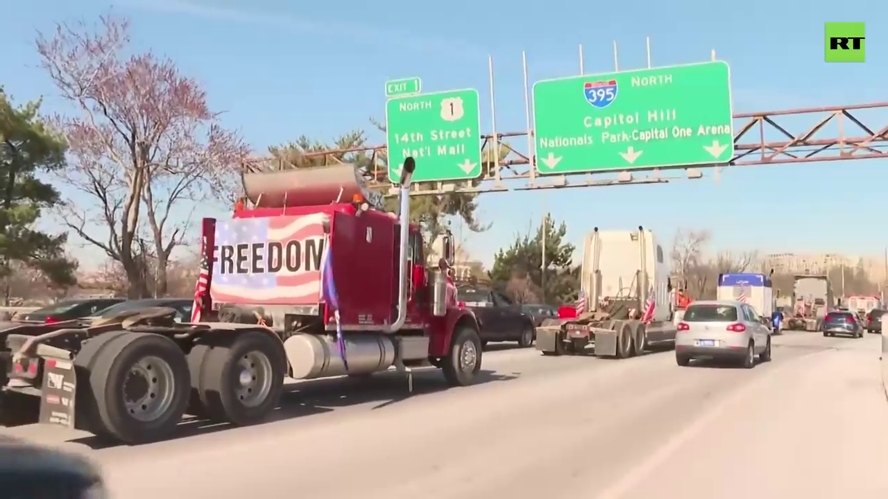 Truckers enter Washington DC as part of the anti-mandate People's Convoy