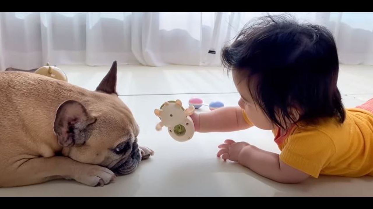 Our dog teaches our baby Sienna Lee how to crawl and stand up. My dog's reaction to my baby crawling and standing is too cute. This is the cutest dog baby crawling video! French Bulldogs Griffin and Haru are best friends with our baby Sienna Lee and are growing up together. These are sweet moments between Sienna Lee, Haru and Griffin that show the strong bond that my dogs and our baby have. From when they met our newborn baby for the first time to now our baby being 9 months old!They have the sweetest dog baby relationship. Hope you enjoy today's video!