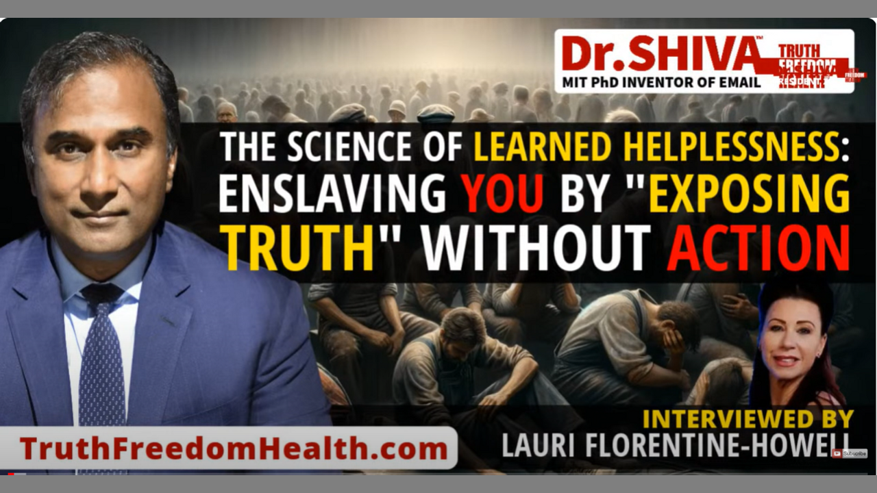 Dr.SHIVA™ LIVE – The Science of Learned Helplessness: Enslaving YOU by “Exposing Truth” Without Action. – With Lauri Florentine-Howell In this interview, Dr.SHIVA Ayyadurai, MIT PhD, Inventor of Email, Scientist, Engineer and Candidate for President, speaks to Lauri Florentine-Howell about the science of learned helplessness and how the Not-So-Obvious-Establishment contributes to the enslavement of working people by “exposing truth” with no solutions to demoralize people. Link to post with full video & transcript: https://vashiva.com/science-of-learne... Time for US. Shiva4President.com Get Educated, or Be Enslaved TruthFreedomHealth.com To attend an online OPEN HOUSE with Dr.SHIVA this THURSDAY at 11 AM EST or 8 PM EST. RSVP at: VASHIVA.com/ORIENTATION. Dr.SHIVA Ayyadurai, MIT PhD, Inventor of Email, Scientist & Engineer, Candidate for US President is committed to health, education, and innovation. Dr. SHIVA’s most recent innovation is the Truth Freedom Health® SYSTEM that is an educational, community, and technology platform that is enabling everyday people to become wiser and smarter – to think beyond Left & Right, “Pro-” and “Anti-” – by learning the SCIENCE OF SYSTEMS – to see things as they truly are to know the real problem to innovate the real solution. To learn more about the Truth Freedom Health® System, visit https://TruthFreedomHealth.com and contribute to this global educational movement to become a Warrior-Scholar. Find out more at https://TruthFreedomHealth.com. Be the Light! Dr.SHIVA e: