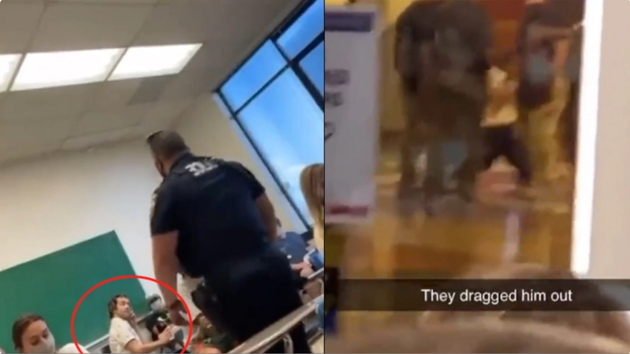 Footage making its rounds on social media appears to show police officers forcibly removing a student from a college class after refusing to wear a face mask.