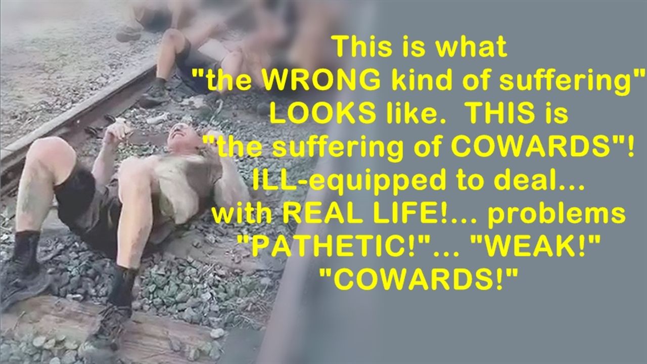This is what "the WRONG kind of suffering" LOOKS like. THIS is "the suffering of COWARDS" ILL-equipped to deal... with REAL LIFE!... problems. "PATHETIC!"... "WEAK!"... "COWARDS!"