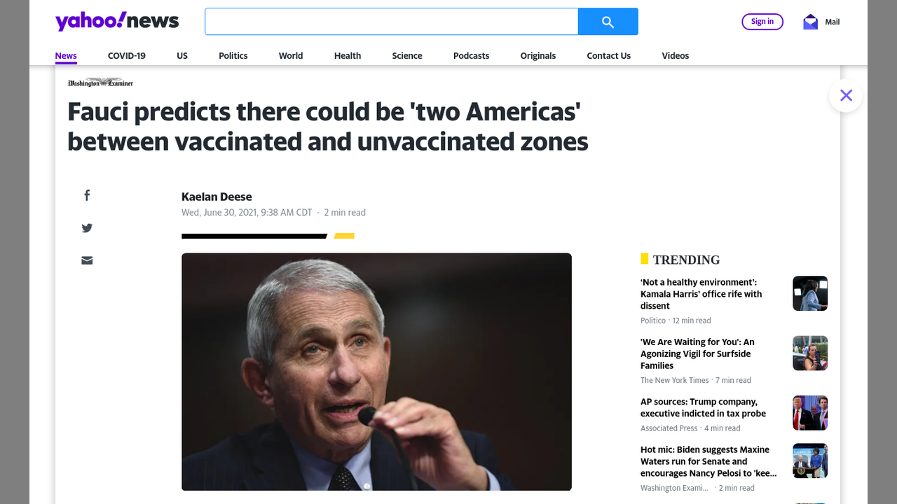 Fauci Says Vaccine Could Split Country, White House Delta Response Teams