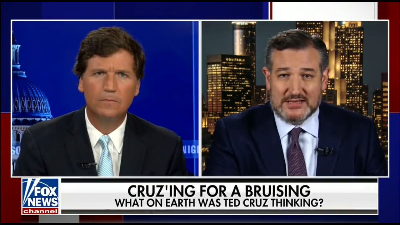 Cruz appeared on Tucker Carlson’s evening show Thursday, apparently at his own request, and attempted to back track on what he said, claiming that he’d been referring to attacks on police.