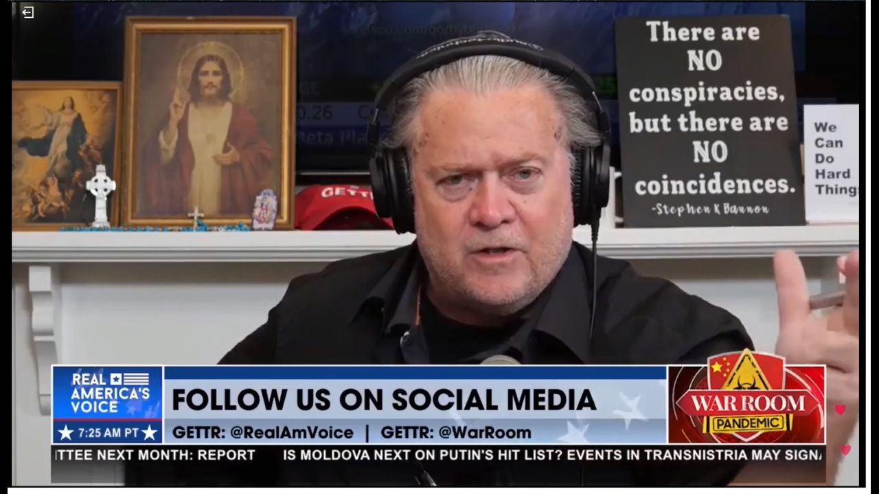 Steve Bannon: Elections have consequences and stolen elections have catastrophic consequences. The guy who had us with growth, who had us with blue-collar people with 11% wage increases, with no inflation in the 4th quarter of 2019. The guy who had the world at peace, he had the mullahs braced up, he had Putin in his place, he was cutting deals with Xi… Yes! They stole this election… Jamie Raskin, Adam Schiff, this country’s in a crisis and you helped create it. And what you’ve done to this nation and the economy and working-class people will be remembered forever. And when we destroy your party at the ballot box in November, like in 1932, the Republicans were destroyed by the Democrats. And we run this deal for 40 or 50 years as we should because you are, it’s not just your incompetence, it’s your malfeasance and your pure evilness, what you’ve done to this nation… We’re going to rub your nose in the hard drive from hell. We’re going to impeach you, Biden. Biden, you’re getting impeached!