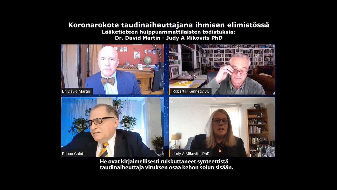 Koronarokote taudinaiheuttajana ihmisen elimistössä. Lääketieteen huippuammattilaisten todistuksia. Dr. David Martin, Judy A Mikovits PhD. Koronarokote on lääketieteellinen laite, joka aiheuttaa tauteja ihmisen elimistön sisällä.