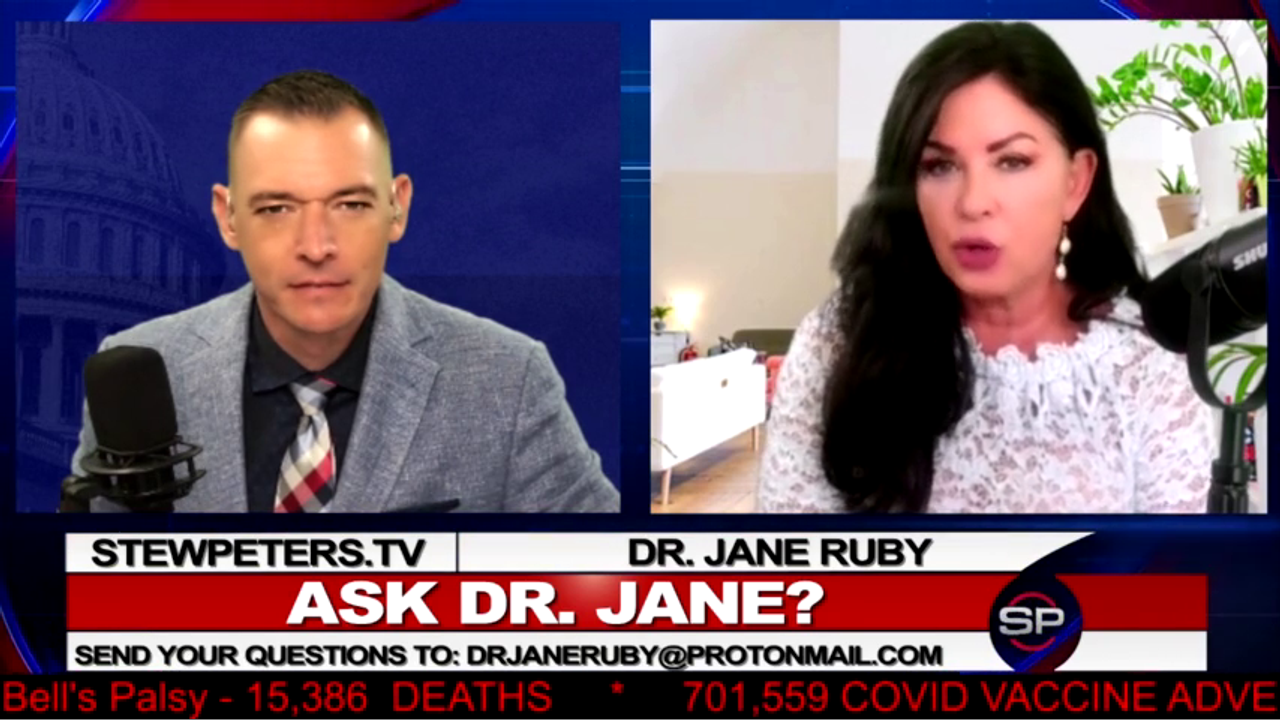 Dr. Jane Ruby joined Stew Peters for the weekly "Ask Dr. Jane" segment, and answered VERY important questions about the new branding of an Ivermectin-like product by Pfizer, spontaneous abortions, percentages of placebo shots, Flu shots for kids and SHEDDING!
