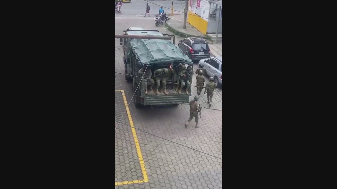 Footage allegedly shows military forces taking positions on the streets of Ecuador to fight armed cartel members
