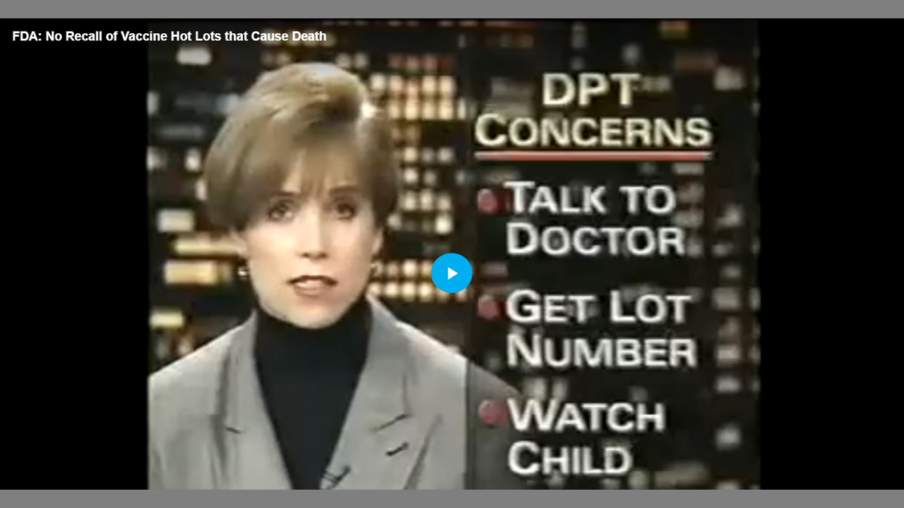 FDA said they would not recall deadly defective vaccine hot lots if the lot was large. A parent pushes back on the FDA's lack of concern after her son died following a DPT shot. Katie Couric reporting on the "Now Show" 1994