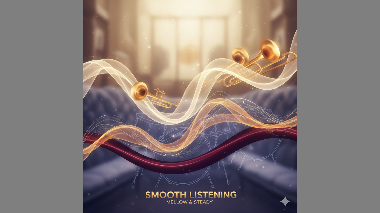 (Tempo: 85 BPM | Key: Eb Major) [Intro] (The track opens with the gentle hum of a Rhodes electric piano, playing lush, extended chords like Ebmaj9 and Abmaj7. A soft, brushed snare enters with a steady, syncopated kick. A round, warm bass guitar locks in, followed by a clean electric guitar playing a two-note sliding lick with plenty of reverb.) [Verse 1] The city's catching its breath tonight The neon's glowing a softer shade of blue I’m leaning back into the velvet light Just a quiet room, and the thought of you (A subtle guitar fill trickles down like rain on a windowpane) [Verse 2] No need to hurry, no need to climb We’ve got the rhythm of the evening on our side Just letting go of the hands of time And catching the flow of a turning tide [Chorus] (The arrangement expands as cinematic strings swell warmly in the background, filling the sonic space without crowding it) Easy like a Sunday drifting by Mellow as the amber in the sky We’re moving in a slow-motion groove With nothing to prove, nothing to lose Just a steady heartbeat, staying true In this golden hue [Verse 3] (The drums shift slightly to a side-stick pattern on the rim, keeping that jazzy, laid-back pocket) The shadows dance on the parlor wall The coffee’s cooling, the world is standing still I hear the echo of a distant call But we’re staying here, perched upon the sill [Bridge] (The texture shifts. A muted trumpet and a soft tenor sax provide warm, melodic accents between the vocal lines) Let the colors bleed together Like a watercolor dream Floating light as any feather Down a long and winding stream (The brass builds into a short, soulful unison swell before dropping back into the piano hook) [Guitar Solo] (A clean, hollow-body jazz guitar takes a melodic lead. It’s understated—lots of space, melodic phrasing, and "blue" notes that mirror the vocal melody.) [Chorus] (Strings reach their peak fullness here, soaring gently over the steady bassline) Easy like a Sunday drifting by Mellow as the amber in the sky We’re moving in a slow-motion groove With nothing to prove, nothing to lose Just a steady heartbeat, staying true In this golden hue [Outro] (The brass accents return, fading out alongside the electric piano. The drums strip back until only the brushed snare remains) Staying true... In the golden hue... Just me and you... (Final shimmering chord on the Rhodes piano, allowed to ring out into silence)