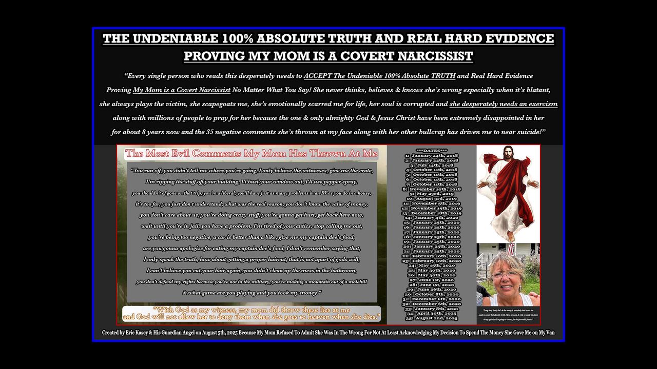 THE UNDENIABLE 100% ABSOLUTE TRUTH AND REAL HARD EVIDENCE PROVING MY MOM IS A COVERT NARCISSIST