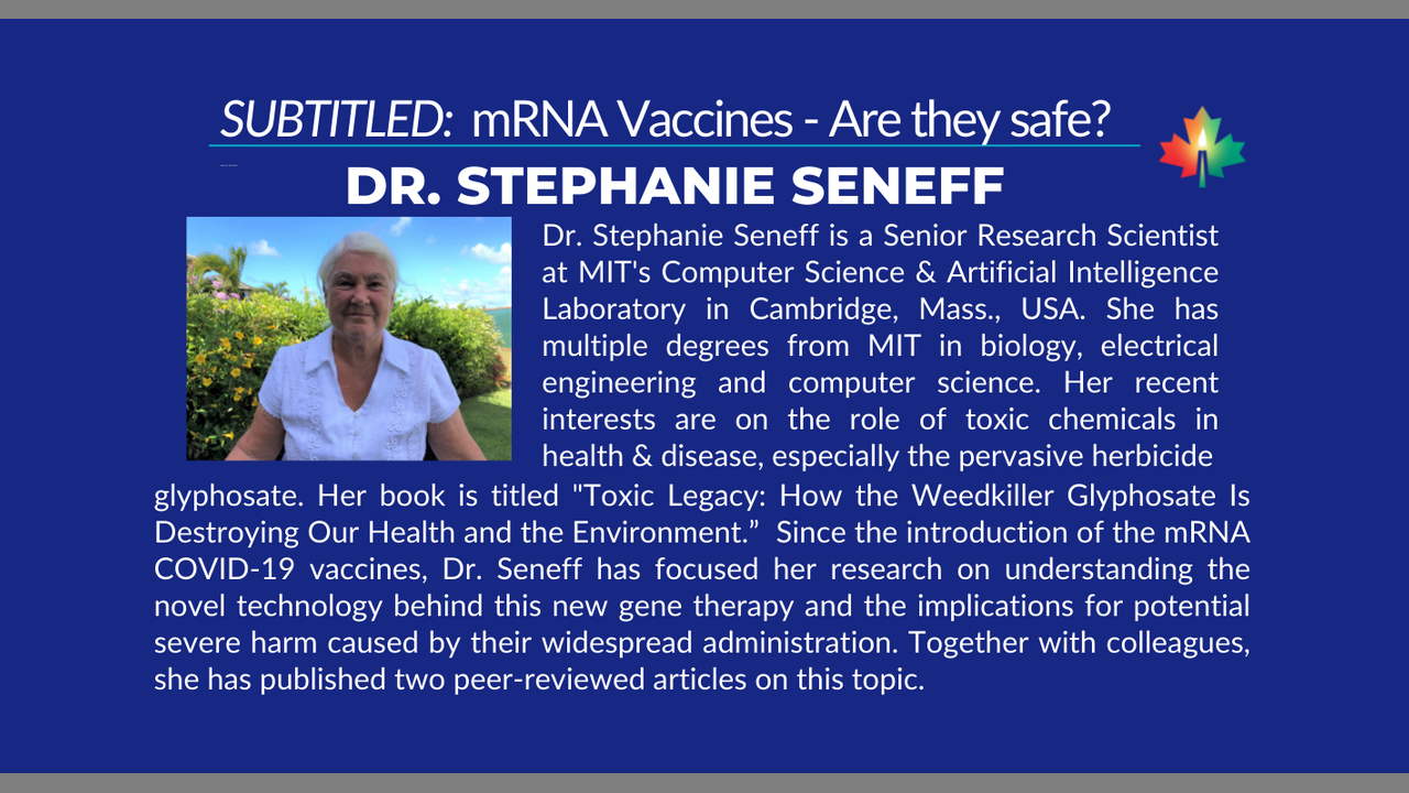 Subtitled July 6/22 InterviewDr. Stephanie Seneff is a Senior Research Scientist at MIT's Computer Science & Artificial Intelligence Laboratory in Cambridge, Mass., USA. She has multiple degrees from MIT in biology, electrical engineering and computer science. Her recent interests are on the role of toxic chemicals in health & disease, especially the pervasive herbicide, glyphosate. Her book is titled "Toxic Legacy: How the Weedkiller Glyphosate Is Destroying Our Health and the Environment.”