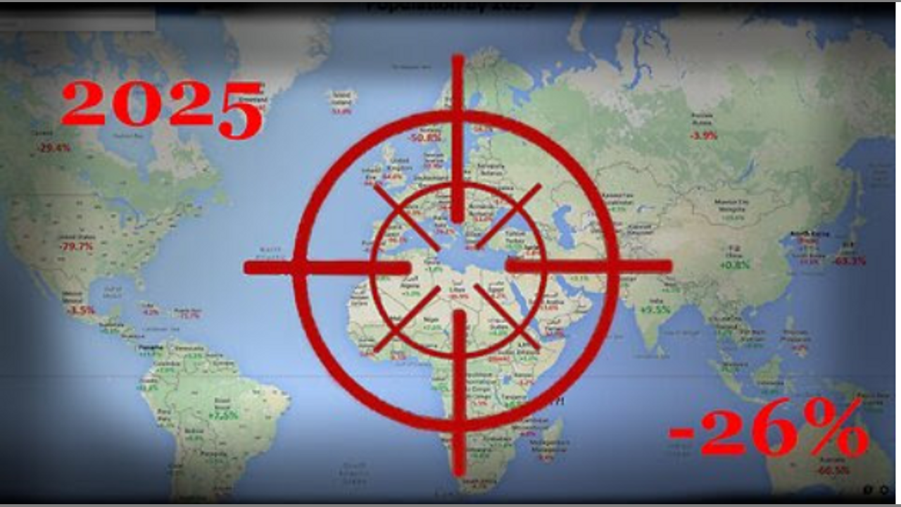 The Deagle Corporations 2020 predictions for massive population reduction for 183 countries by 2025. This material was scribbed from the Deagle Corporations website, but here it is archived by archive.org on The Way Back machine https://web.archive.org/web/20200627041103/http://www.deagel.com/country/forecast.aspx?pag=2&sort=GDP&ord=DESC