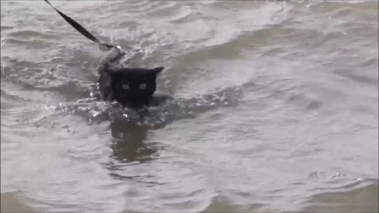 On July 6, 2022 I took my one year old cat, Happy for a swim for her first time ever. It was in the Pacific Ocean at Kitsilano Beach, Vancouver, Canada. She was not happy, meowing in the water! But cats hate water, don't they? She her at minute 4:30 taking the dunk!