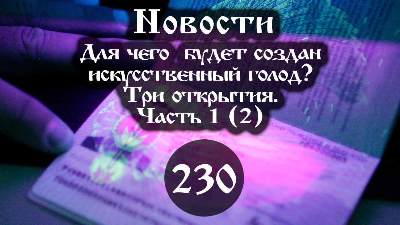 10.12.2021. Для чего будет создан искусственный голод? Три открытия (Выпуск № 230 часть I (2)).