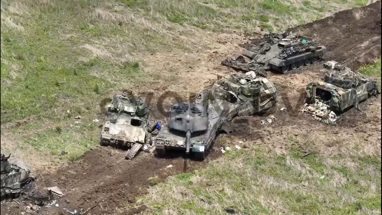 Immediately 4 abandoned M2 Bradley heavy infantry fighting vehicles and one Leopard 2A6 as a result of an unsuccessful attempt by the AFU to attack Russian positions on the Orekhovsky sector of the front.