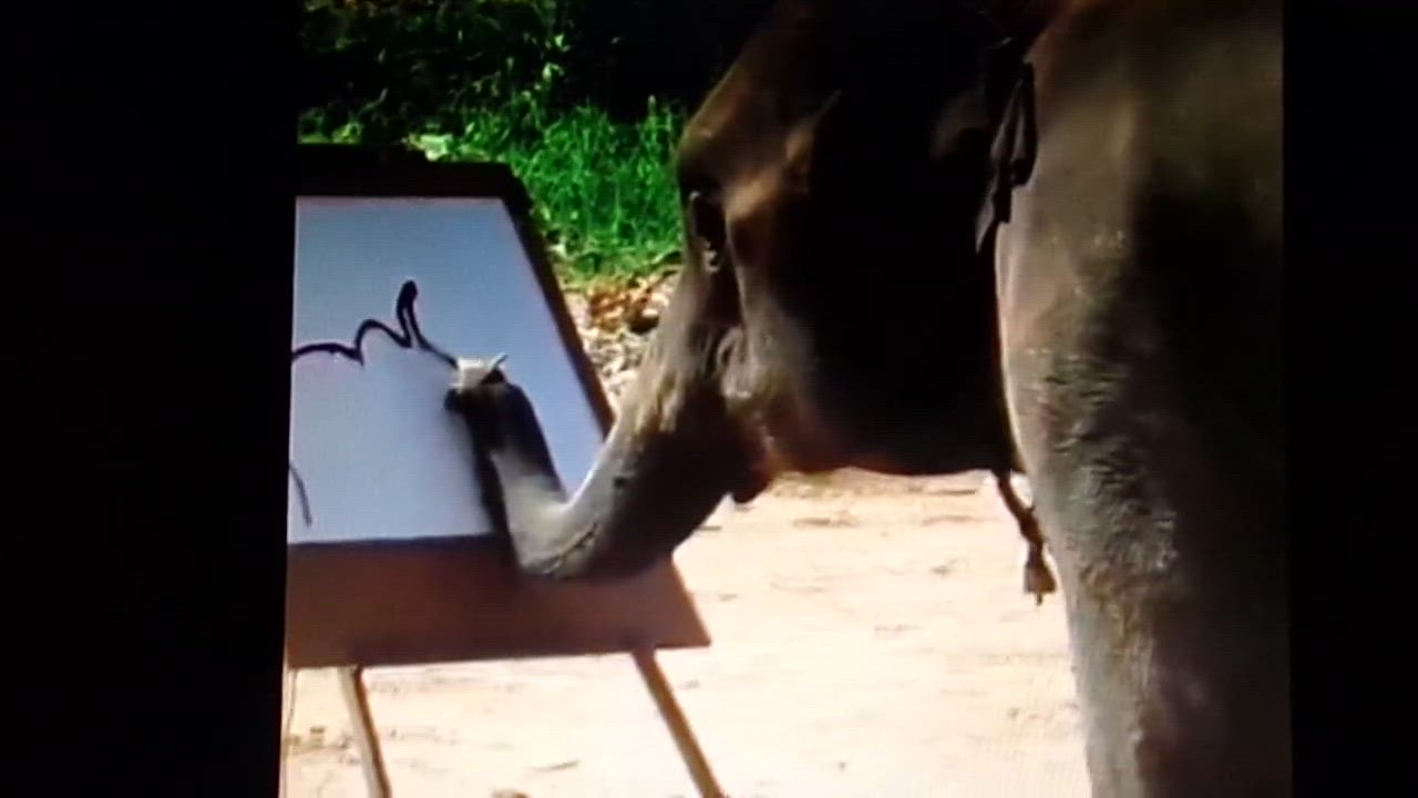 The Elephant is drawning an image of itself.