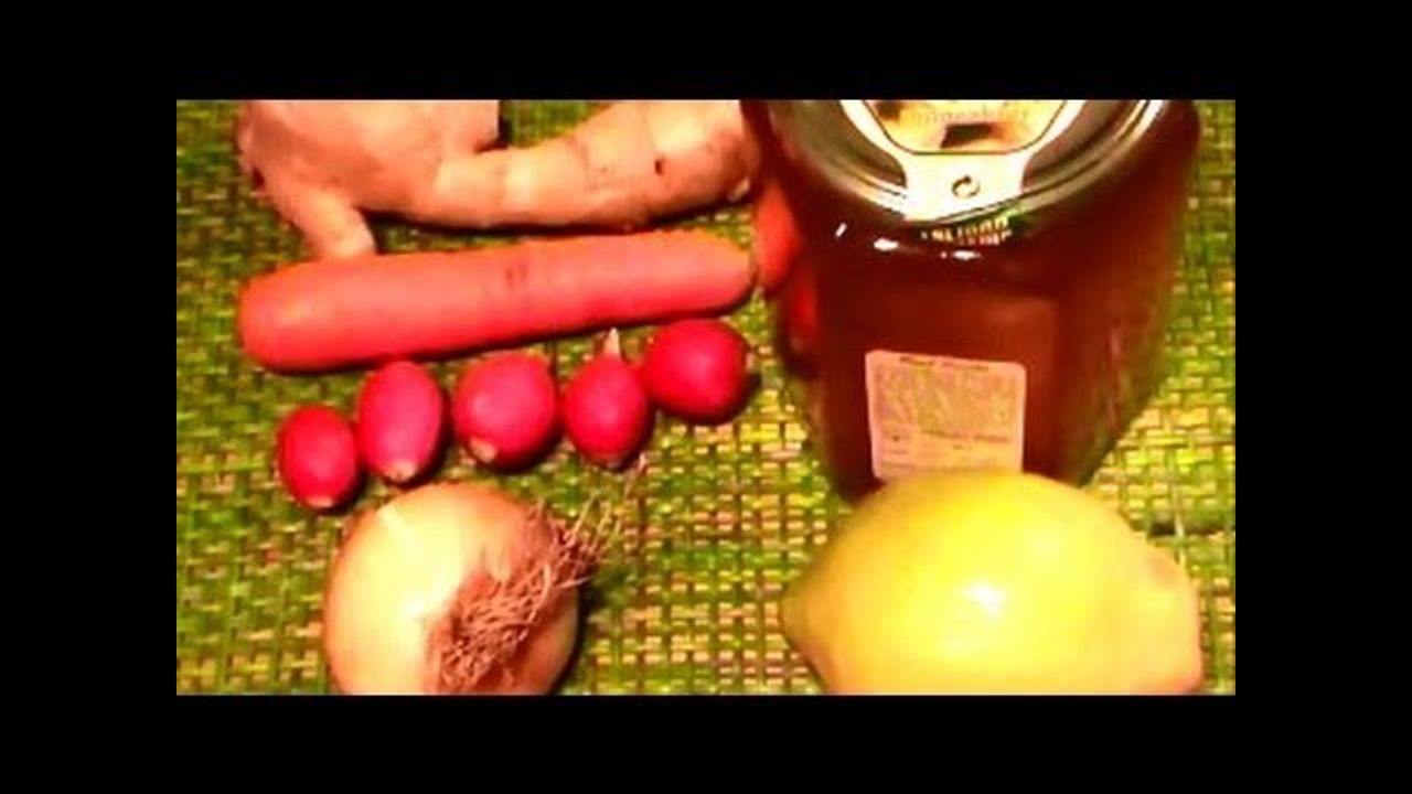 El principal ingrediente será la *miel, y después, cualquiera de estos ingredientes: una cebolla, varios rabanitos o rábano, una zanahoria o un trozo de jengibre. Si además tenemos limón, será el toque de perfección para la excelencia de nuestro jarabe casero. En el video podéis ver todo el proceso de elaboración.