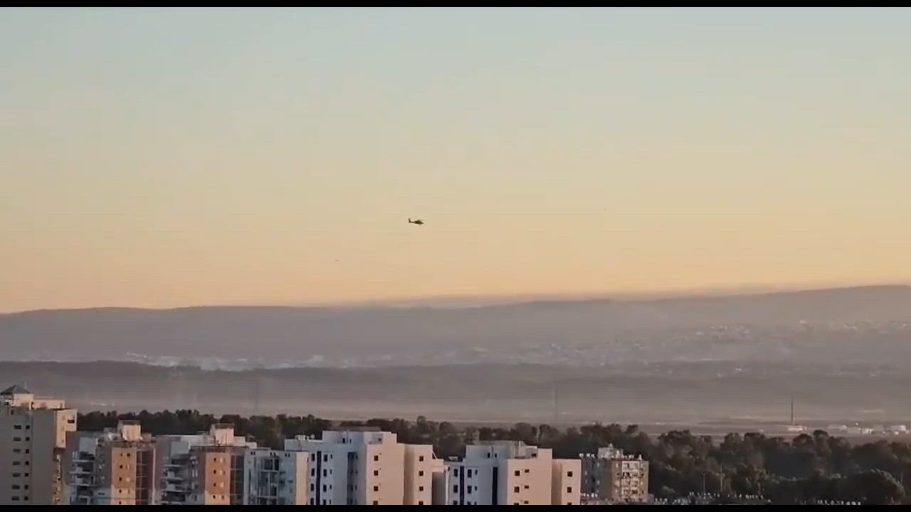 The drone can be clearly seen chased by an IDF helicopter. The drone has roamed israeli airspace for an hour before reaching its target.