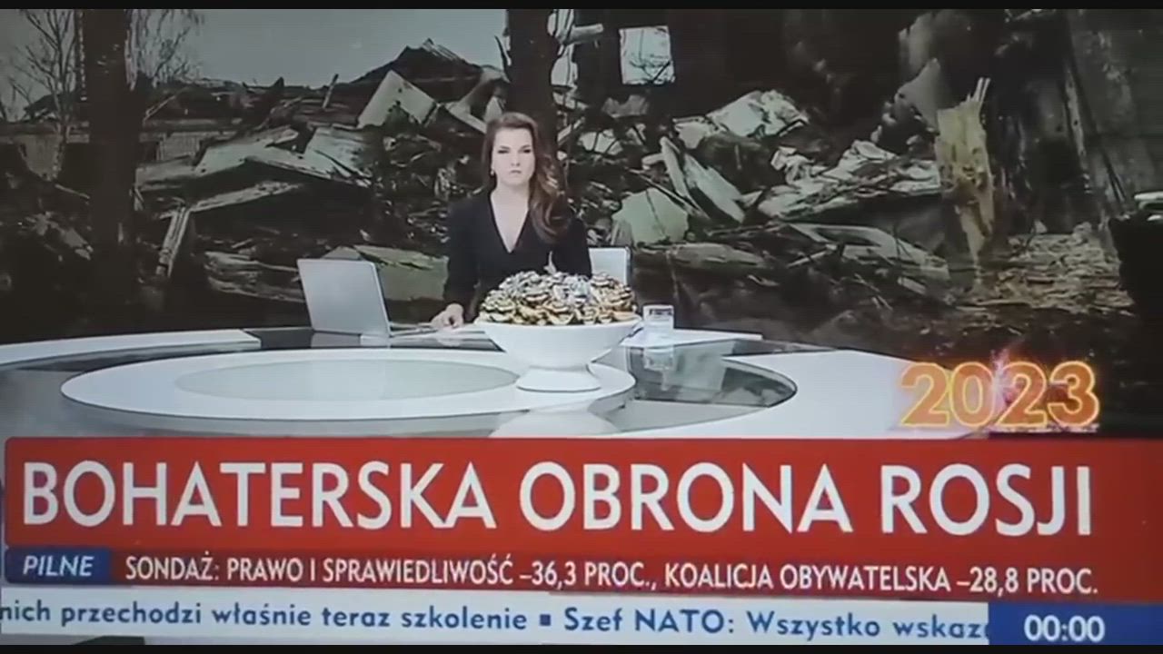 The Polish TV channel aired the caption: “The Heroic Defense of Russia.”