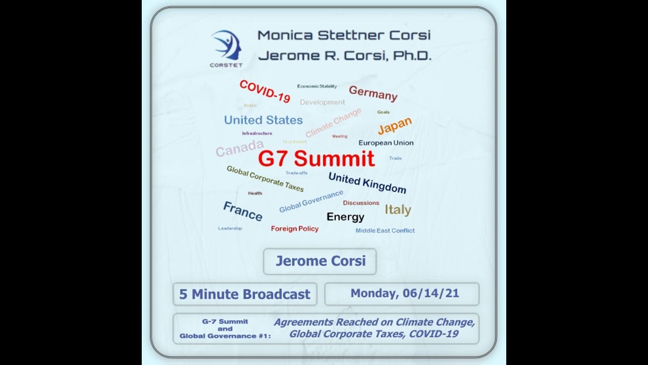 In today's 5 minute overview of the 30 minute broadcast, Dr. Corsi begins a new series on the events of and agreements made during the G7 Summit in the United Kingdom.