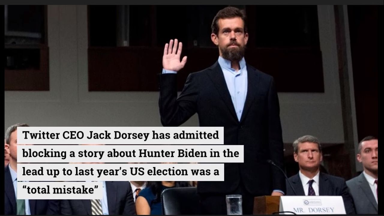 Twitter CEO Jack Dorsey has admitted blocking a story about the president’s son Hunter Biden in the lead-up to last year’s US election was a “total mistake”.