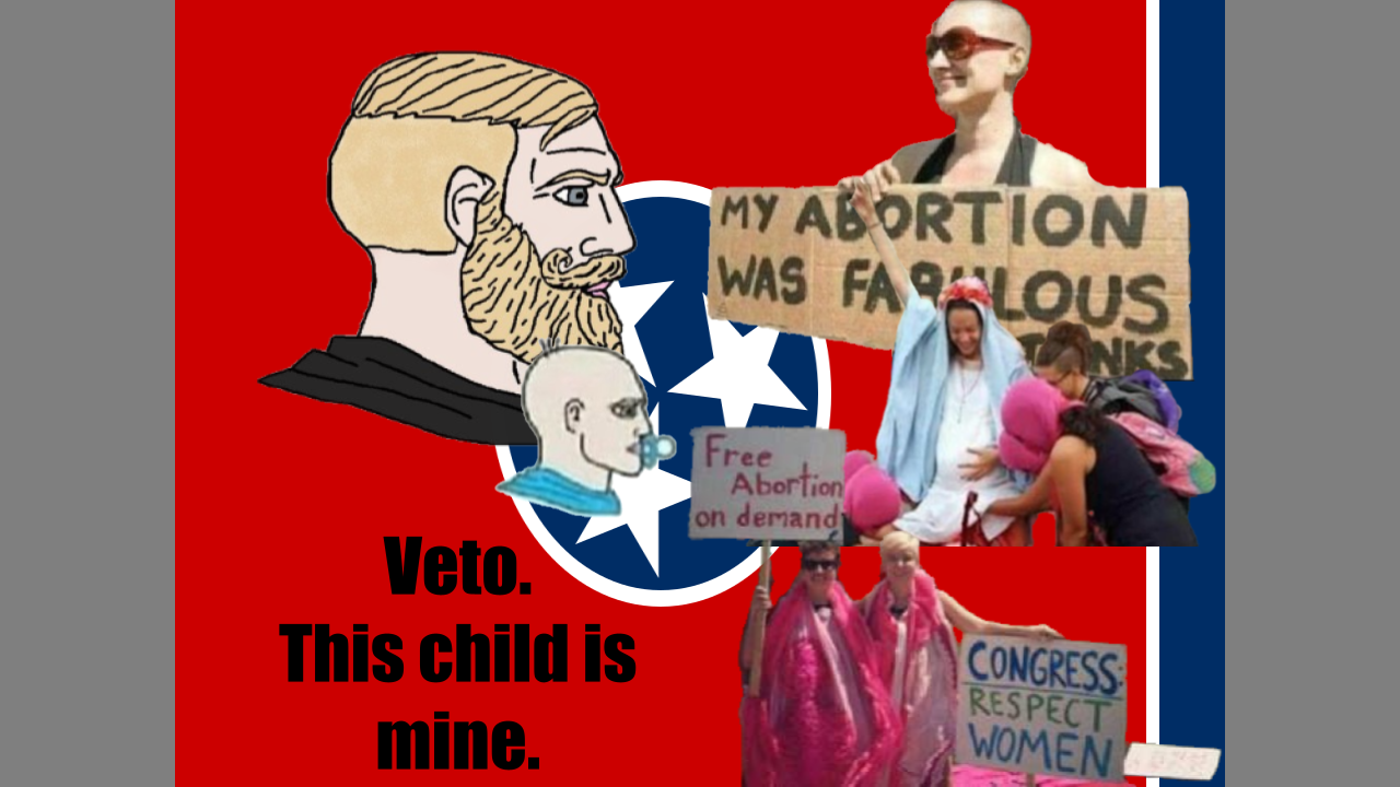 Pursue legislation similar to Tennessee's SB 494 which would allow fathers to veto abortions and fix the unconstitutionality of it. Feminists claim to want equality to force it upon them. Also fix the bias against men in family court and the like.