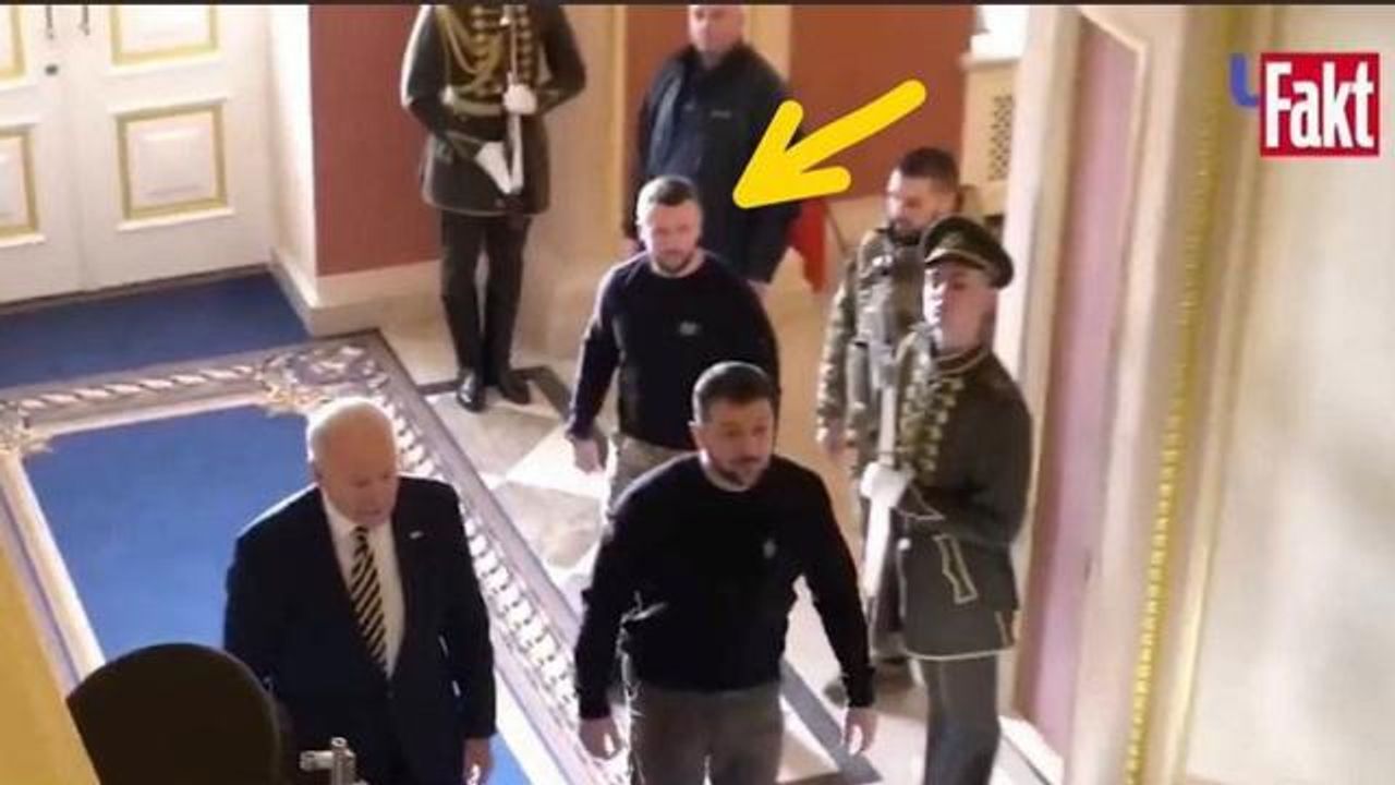 The Biden double with the Zelensky double. Actually looks like there's another double in full bdu behind the black t-shirt double. Kind of a puppet's puppet