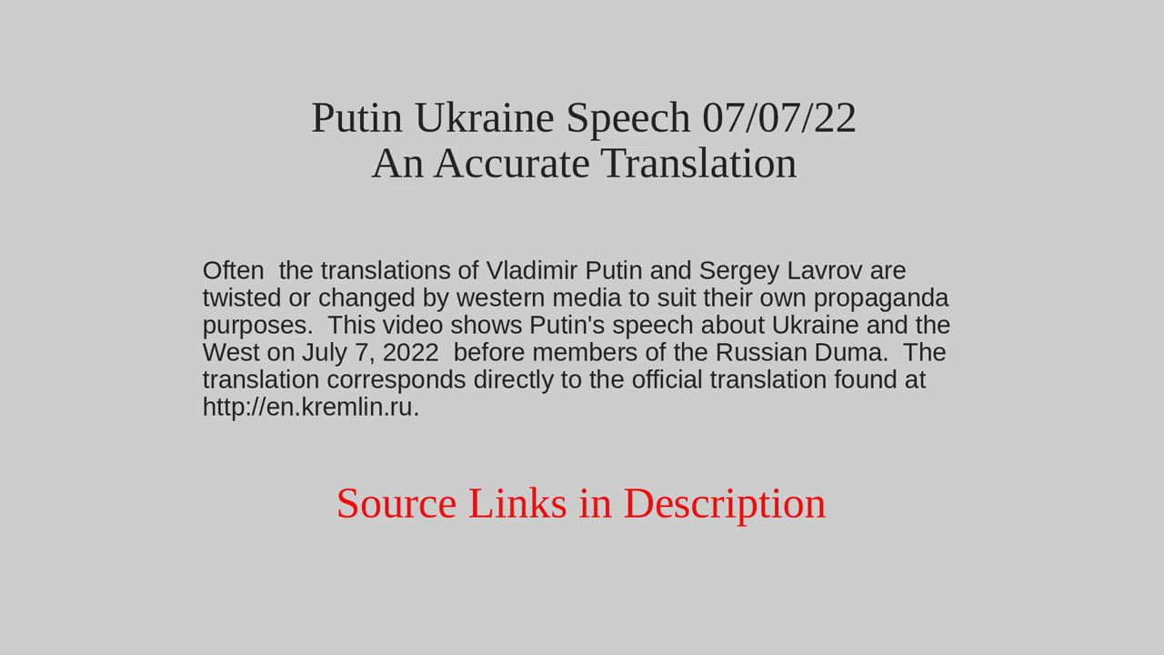 Putin Ukraine Speech 7/7/22 An Accurate Translation