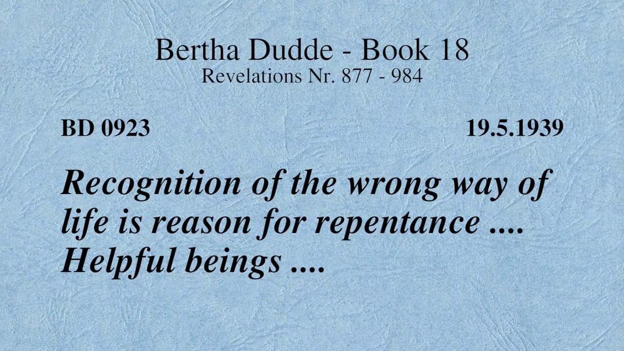 BD 0923 - RECOGNITION OF THE WRONG WAY OF LIFE IS REASON FOR REPENTANCE .... HELPFUL BEINGS ....