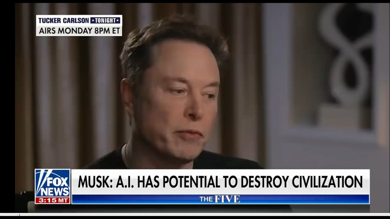 The Five’ co-hosts discuss Elon Musk’s warning to Tucker Carlson about artificial intelligence's potential to destroy civilization. The full interview with Musk airs Monday night on Tucker Carlson.