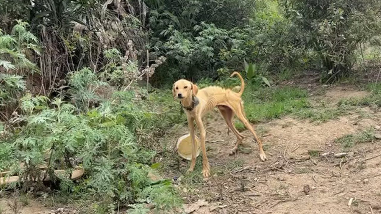 Severely Emaciated Dog Locked Up in the Mountain, Still Loyal to Protect Things for Heartless Owner