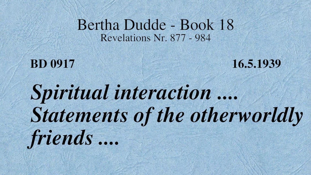 BD 0917 - SPIRITUAL INTERACTION .... STATEMENTS OF THE OTHERWORLDLY FRIENDS ....