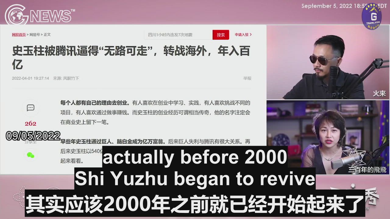 9/5/2022 Fay Fay Show: Although the real estate area is the best place for the CCP’s bagmen to make big and quick money for their bosses, Shi Yuzhu has not been successful at all in that sector, and he is banned from traveling abroad currently