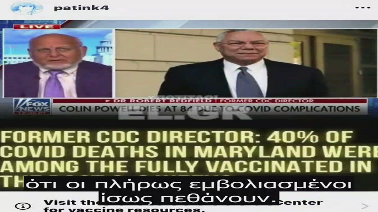 Πρώην Διευθυντής του CDC-Τις τελευταίες 6-8 βδομάδες, πάνω απ' το 40% των ανθρώπων που πέθαναν στο Maryland ήταν πλήρως εμβολιασμένοι