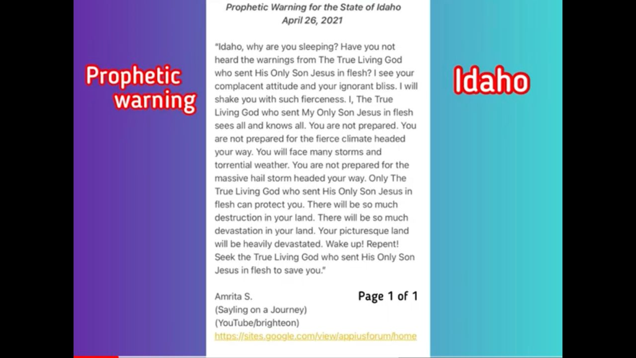 Prophetic warning to the state of Idaho! April 26, 2021