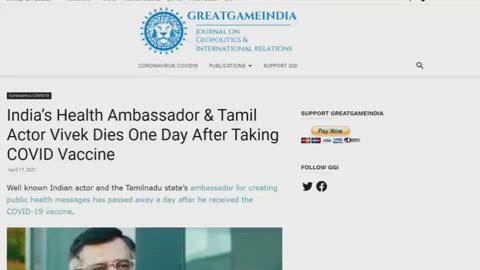 Video taken from GreatGameIndia. - Many in India are outraged after the country’s public health ambassador died suddenly only a day after receiving the COVID-19 vaccination, according to reports.
