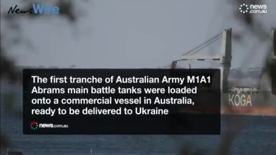 ❗️Video of Australian M1A1 Abrams tanks loading onto a commercial ship at the port of Geelong to be shipped to Ukraine.