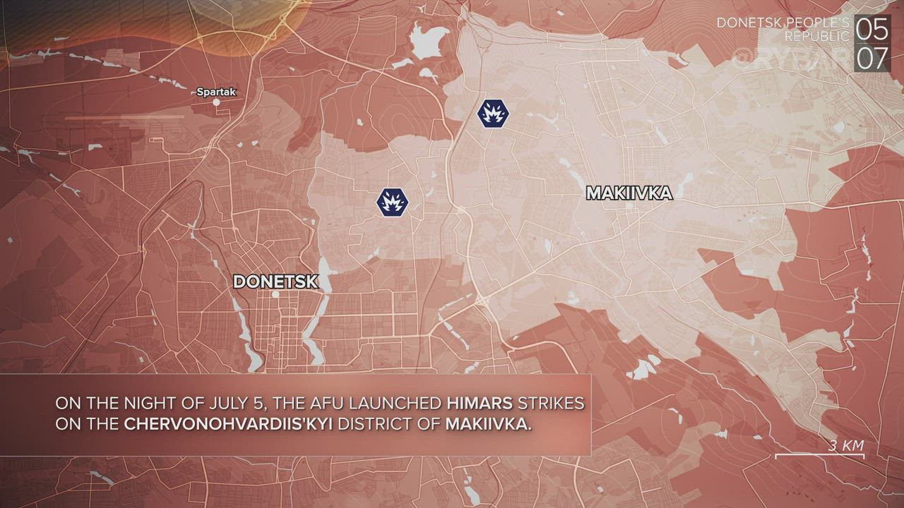 ▪️On the night of July 5, the AFU launched HIMARS strikes on the Chervonohvardiis'kyi district of Makiivka.