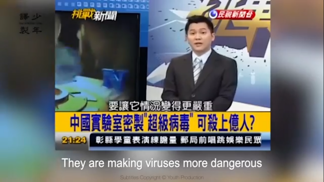 Taiwanilaisessa tv-ohjelmassa keskustellaan laboratorioista karkaavista tappavista viruksista (2013)