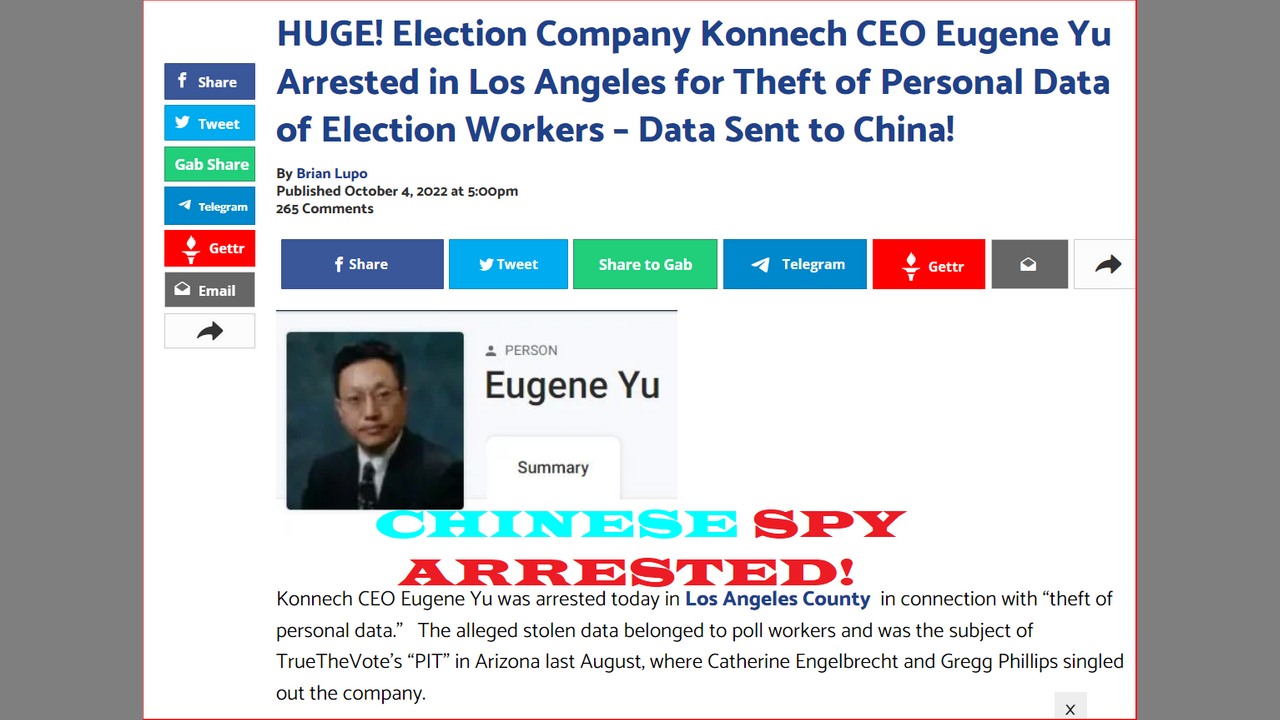 Election Co. Konnech Executive Eugene Yu arrested for election data theft. Rep. Walorski's Mom Tells Biden Where Jackie Is Right to His Face. https://www.thegatewaypundit.com/2022/10/huge-truethevote-right-election-company-konnech-ceo-eugene-yu-arrested-los-angeles-theft-personal-data/ https://www.westernjournal.com/rep-walorskis-mom-tells-biden-jackie-right-face-media-banned/?utm_source=Email&utm_medium=CTBreaking&utm_campaign=breaking&utm_content=conservative-tribune&ats_es=7eb8d65293925ac3277c92b402c2a8d3