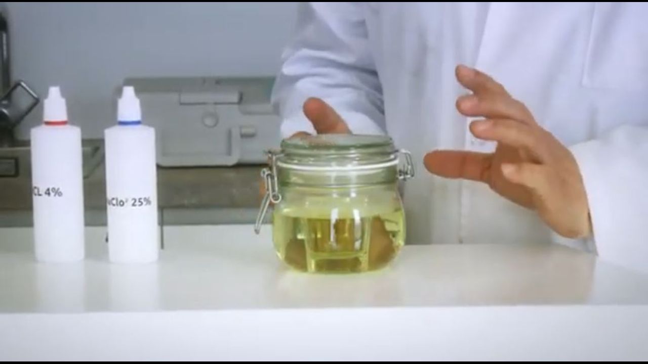 Also need a shot glass and a sealable all glass jar shown in video and easily obtained. No metal can be exposed to the chlorine dioxide ( not even a metal lid )