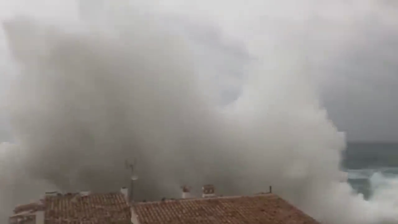 Waves hit the Canary Islands in southwestern Spain during a storm today. Strong winds and torrential rain hit Spain overnight, affecting at least five resort regions, but rescuers say a calm is not expected, the storm is raging and brings new strong winds and torrential rain. The storm also flooded rivers, collapsed power lines, uprooted trees and disrupted rail and air links in the region, leaving more than 18,000 families without electricity.